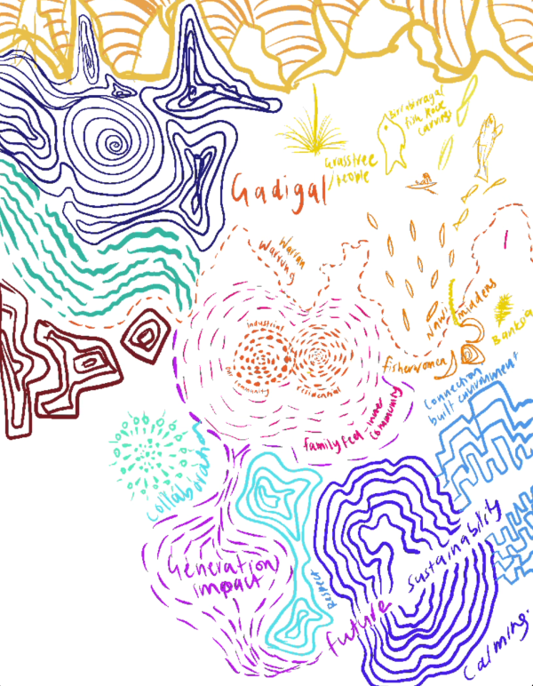 “We spoke about connection; connecting people through infrastructure, movement while creating a sustainable future, and I linked those themes to place and country to create Flow….It is a tribute to the cultural tapestry of this land. Through respect, grounding, and action, we can shape a future that listens to its oldest voices.”
