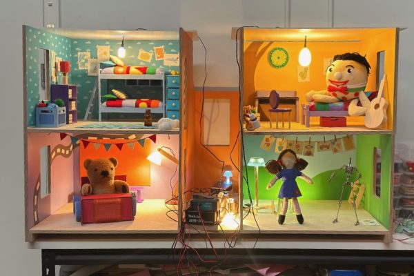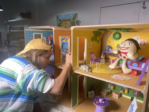 Working alongside animation director Marieka Walsh – who was embedded across the entire production from pre-production through puppet builds and final animation – and puppet and production designer Jacqui Hudson, we set out to create the new opening titles in close collaboration with the ABC’s Play School set design team. Every frame was captured through stop-motion puppetry, filmed using a robotic arm and Dragonframe to achieve precision without sacrificing warmth. The technology moved like clockwork; the materials still felt like cardboard, glue, paint and imagination. Terry Bail and the team at Archology constructed the centrepiece of our vision – an extraordinary approx. two-metre wide house, built as a fully practical miniature world. Real windows. Real depth. Real shadows.