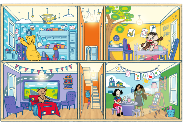 Over a year ago, we read a beautiful and clear brief from the people at Play School. I feel briefs don’t often get a shout out in these results driven times. We pitched a carefully composed storybook world – a gentle nod to Wes Anderson in its symmetry and stop-motion charm – grounded in the handmade, craft-table spirit that has always defined Play School. The intention was clear from the outset: to honour 60 years not by polishing the past, but by physically building it. This was especially significant as the 2026 titles mark Kiya’s first ever appearance in the opening sequence – a proud moment of representation. To ensure that felt authentic and culturally grounded, we engaged Noongar artist Kamsani Bin Salleh to paint Kiya and Jemima’s bedroom, including Kiya’s hero turtle artwork.